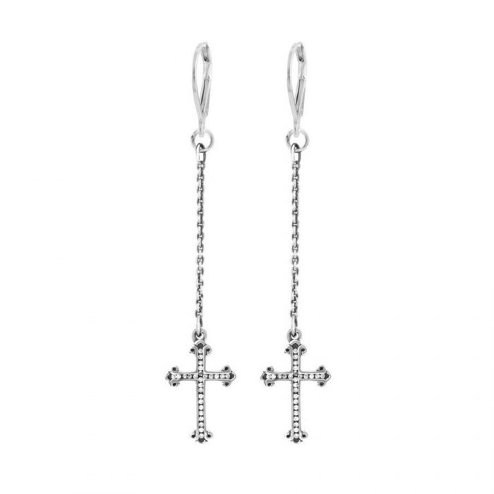 King Baby Leverback Earrings With Traditional Cross Drops With Pave CZ