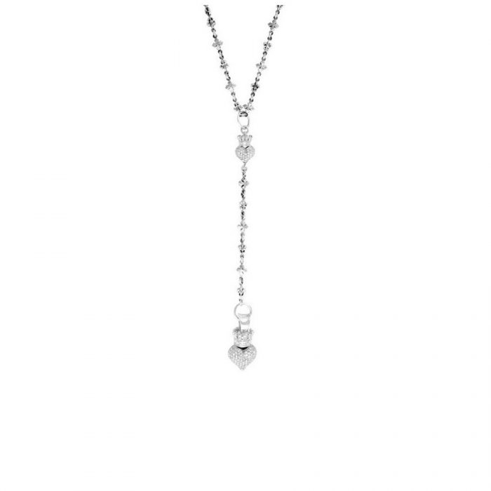 King Baby MB Cross Fluer De Lis Rosary With 3D CZ Crowned Hearts