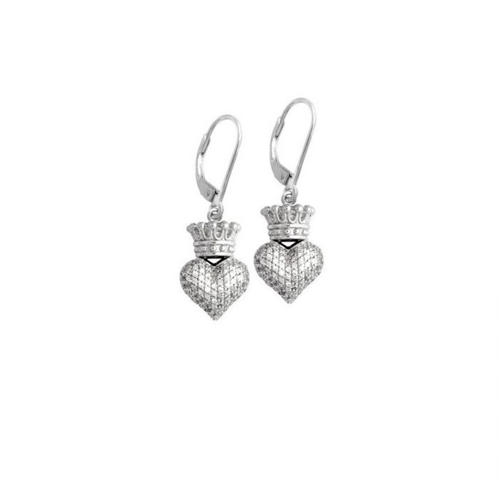 King Baby Small 3D Crowned Heart With Pave CZ Leverback Earrings